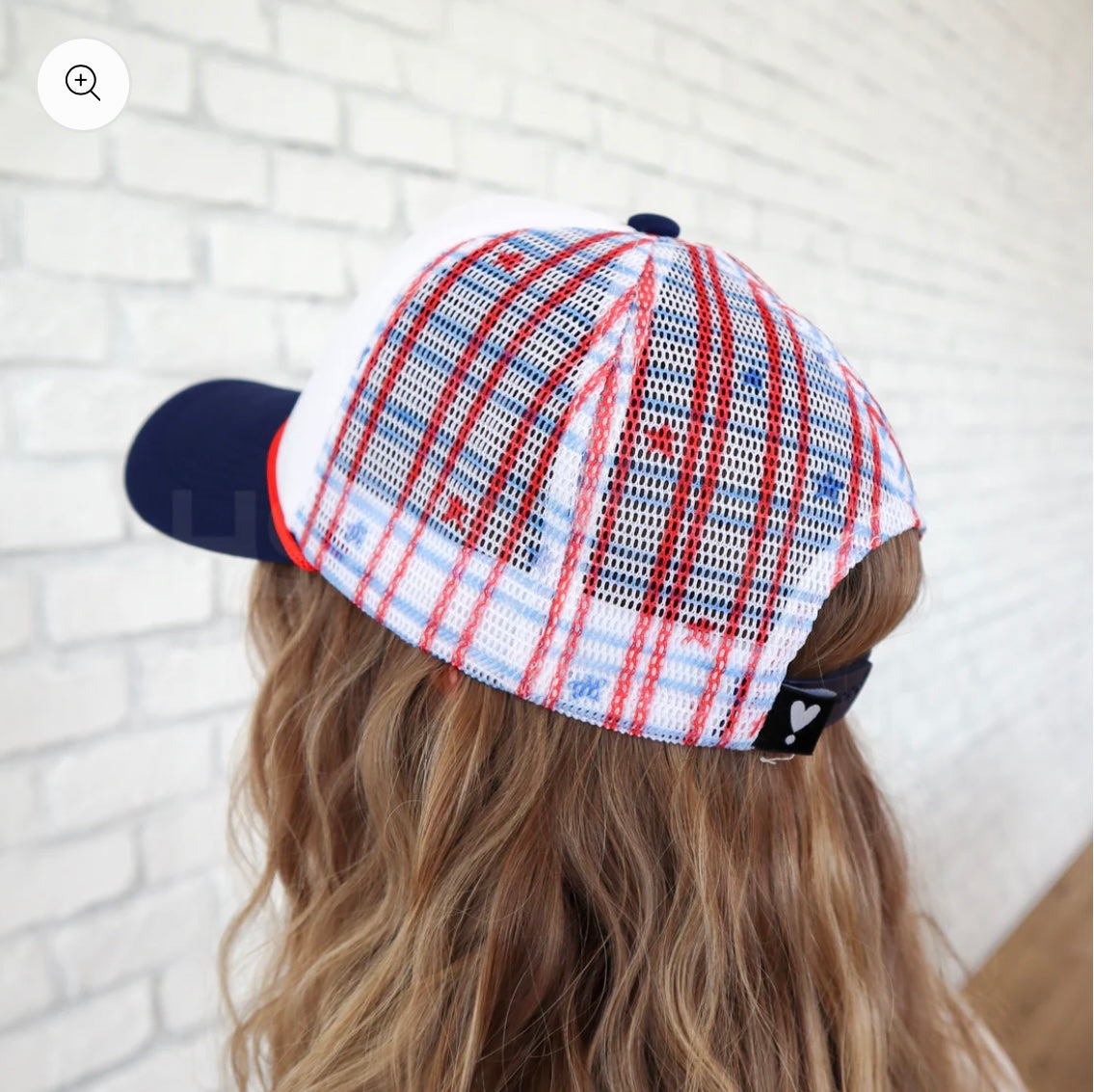 Show off your love for the USA with our RED, WHITE & BLOOM trucker hat! This patriotic design will have you looking stylish while showing your American pride. Stay cool and comfortable with the classic trucker style. Perfect for any casual occasion.